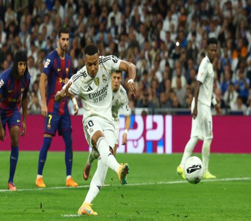西甲第10轮主场迎战巴塞罗那的西班牙国家德比中,皇家马德里在下半场获得点球机会,但姆巴佩主罚的点球被什琴斯尼扑出。姆巴佩也成为了自从1991年6月7日以来首位在正式比赛对阵